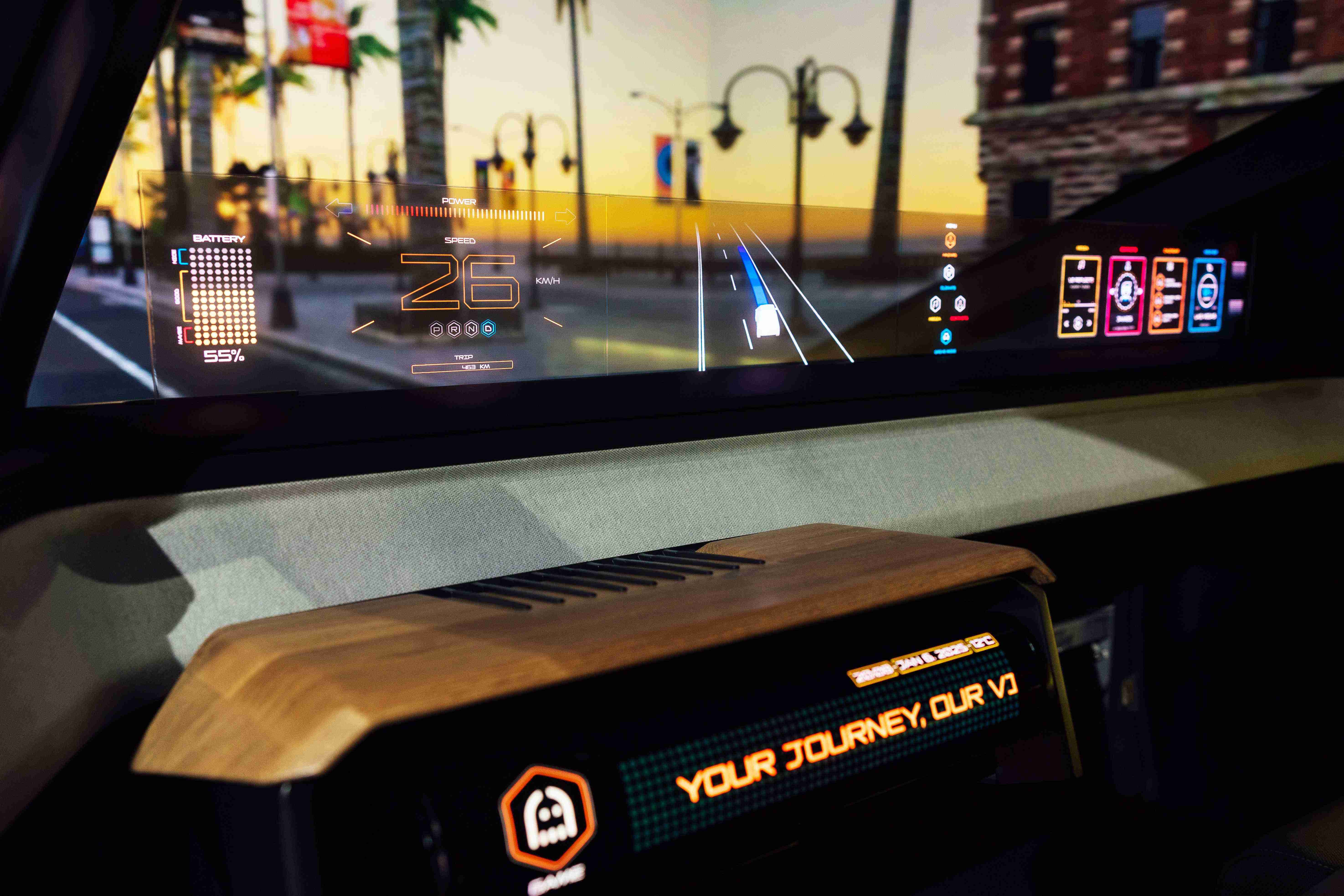 车用运算方案驱动无界透明显示介面(Horizon Image Glass),,整合仪表板、、、中控及副驾显示功能为一体式全景呈现,,不仅提供清晰的外部视野,,亦能即时显示车辆状态、、导航及路况资讯,,,,并赋予个性化设定与驾驶安全警示等加值化服务。。